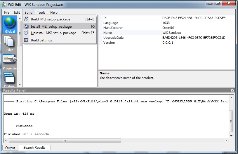 You just created  your first project. You could double click on the MSI file that you just created but let’s stay in the dialog and run is from the Build menu.